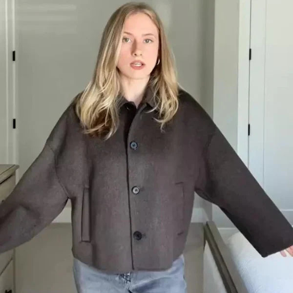 The Hamburg Wool Jacket is crafted from a premium wool blend with recycled fibers for a stylish, eco-friendly choice. Featuring a cropped length, lapel collar, and buttoned front, this jacket is perfect for any chic, modern wardrobe.