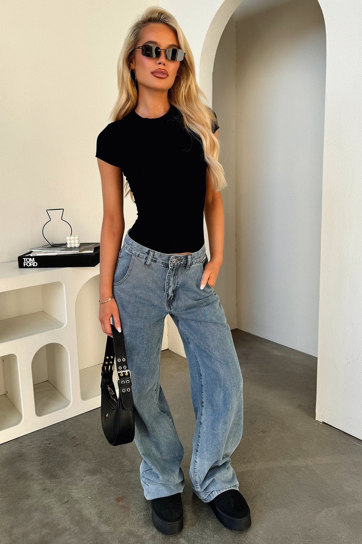 Sophie Jeans will take your style to new heights with their mid rise fit and four functional pockets. The baggy fit adds a touch of effortless cool, while the zip and button up closure and belt loops provide functional details. Pair with a cute crop and sneakers for a trendy and comfortable look!