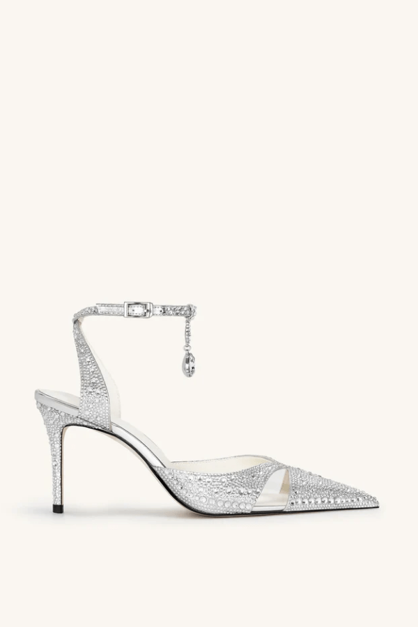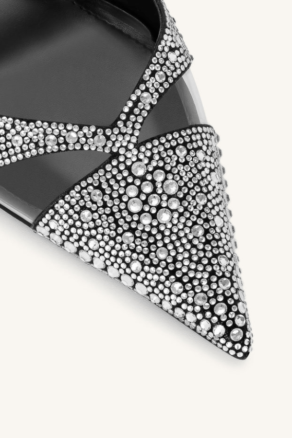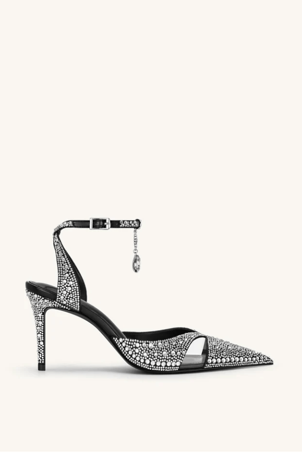 Elevate your look with these stunning high heels, crafted from a unique shimmering sandpaper and TPU upper that adds a touch of sparkle and texture. Lined with soft vegan leather, these heels offer both style and comfort for any occasion. The design is accented with silver hardware, adding a hint of sophistication and modern flair. With a 3.35-inch (8.5 cm) heel height, they provide an elegant lift without compromising on stability. The rubber sole ensures a secure grip, making these high heels as practical as they are stylish – the perfect choice for turning heads at any event.